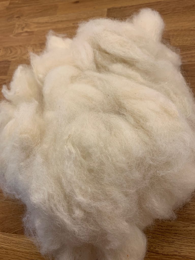 The Boys are shorn once a year to keep them cool during the summer months, and the shorn fleece has been washed, picked and combed through (known as ‘carding’) to separate the fibres and remove any bits of debris (straw, seeds etc).